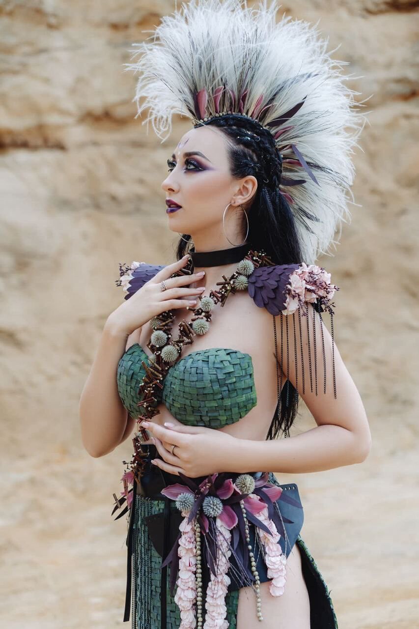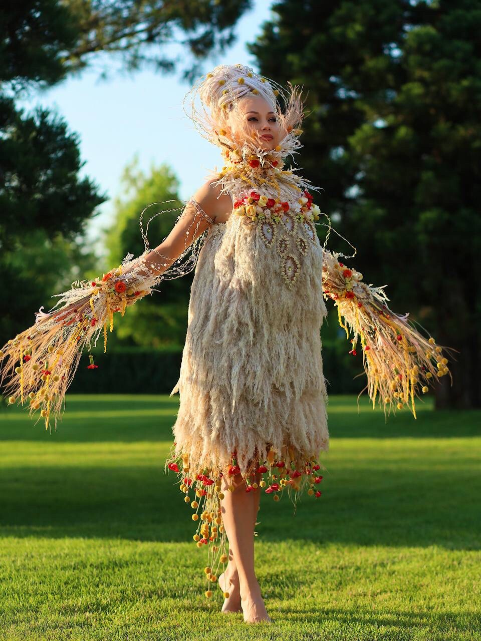 Two main competition photos (mandatory) — front view and back view, the entire work must be visible in the frame. The photos must be atmospheric and convey/reveal the idea of the participant. (Retouching of the background, additional objects in the photo, etc. is allowed, i.e. everything except the outfit and accessories)
